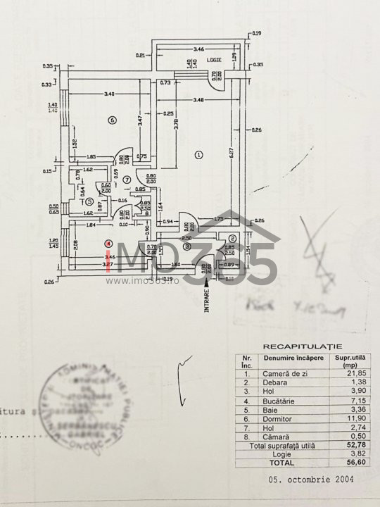 Apartamentul este pozitionat la etajul 4 din 10 si este in suprafata utila de 56.60 mp (balcon inclus).