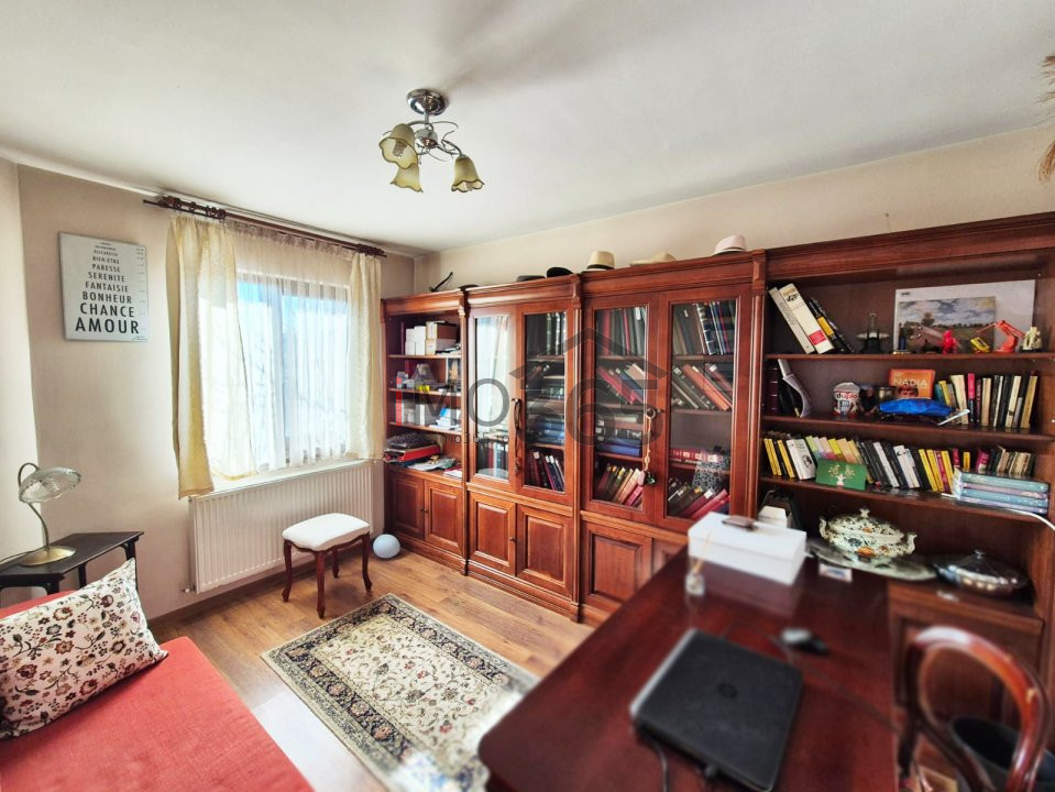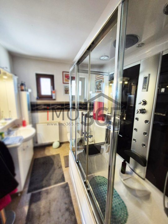Etaj: Lounge, 2 dormitoare, debara cu acces in pod, doua bai. Pod izolat si suficient de inalt pt depozitare. Placa peste etaj.