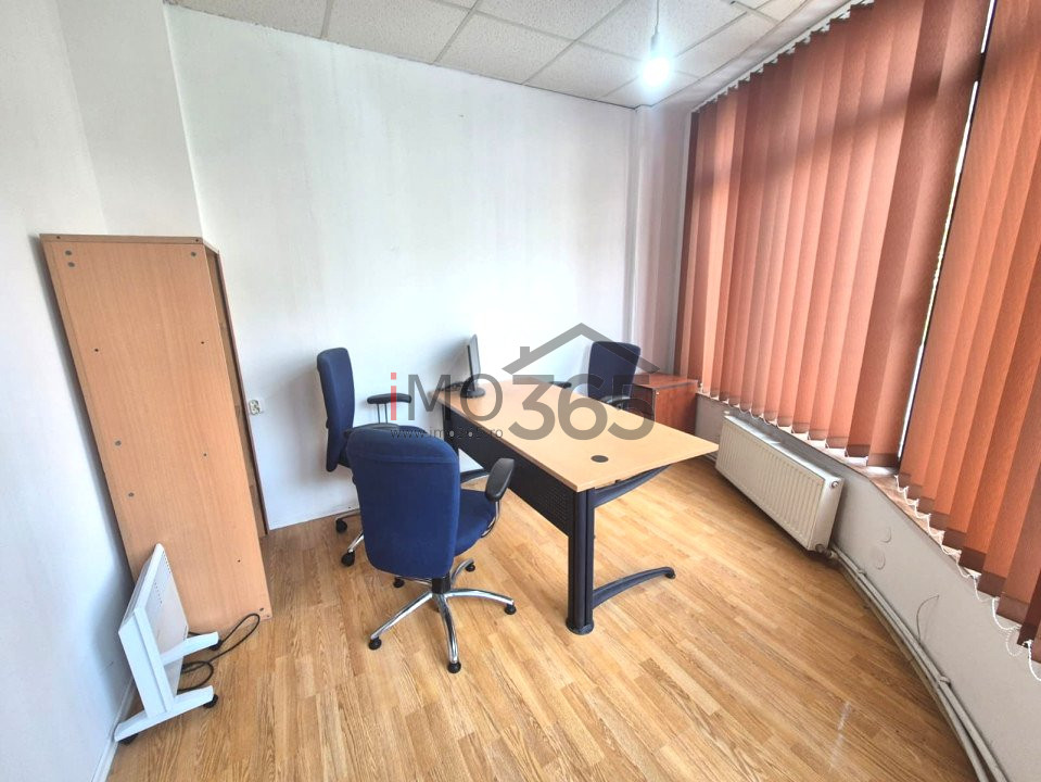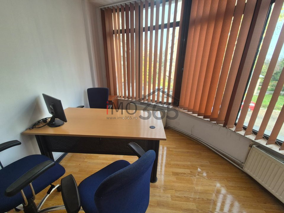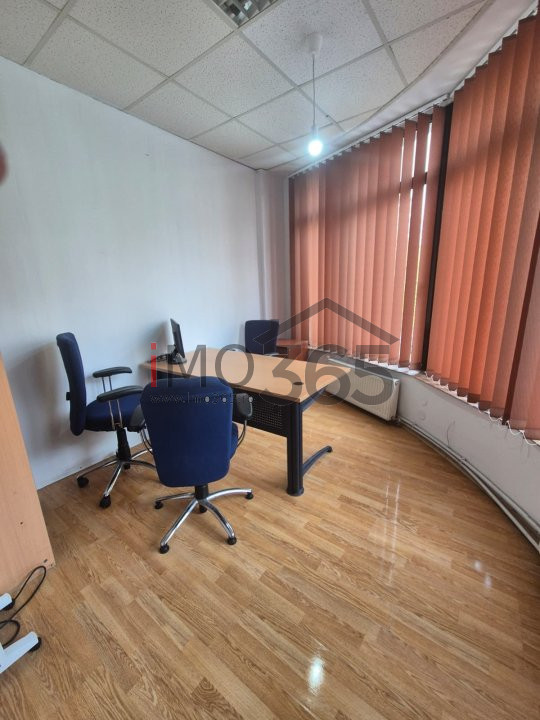 Spațiul se afla la etajul 1 în clădire comerciala (nu bloc) și se închiriază mobilat, asa cum se vede în poza.